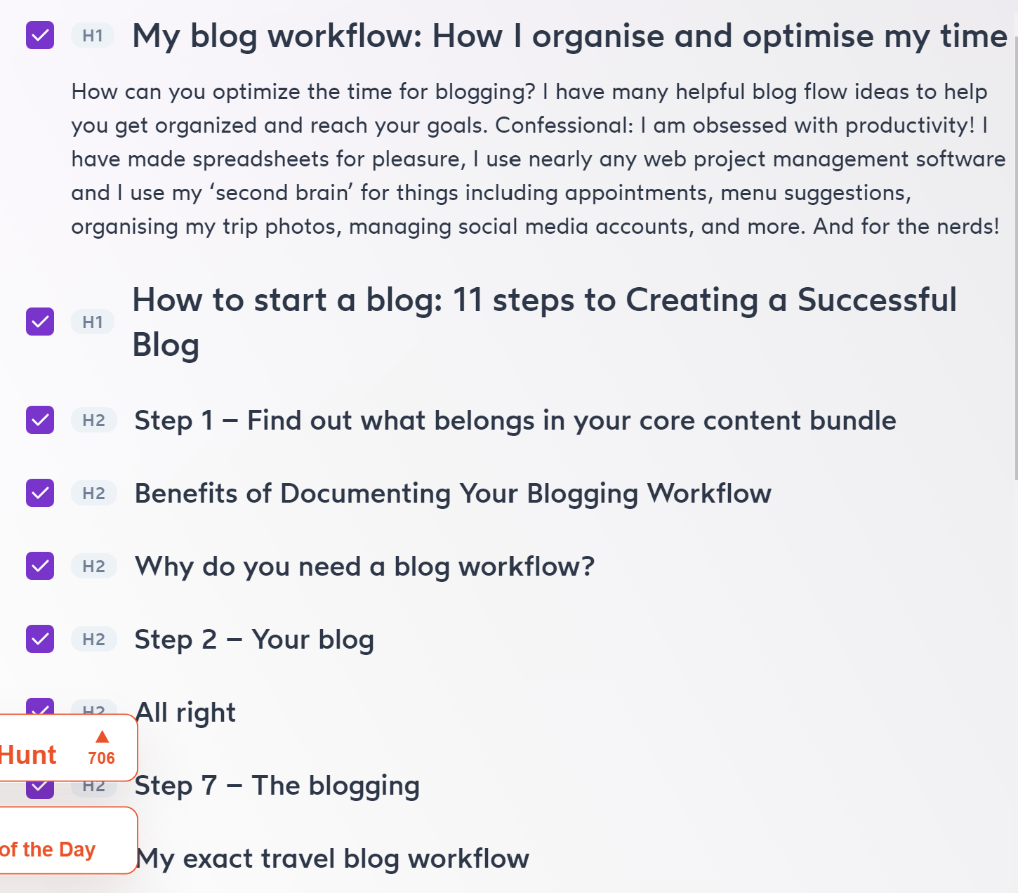 While the outline generator can be hit-or-miss depending on your target keyword, I find it is still worth using to give you some ideas on how you can outline your blog post. I usually take parts of the results and build my own outline, but it gives you a starting point and can give you some ideas to cover that you maybe had not thought about.